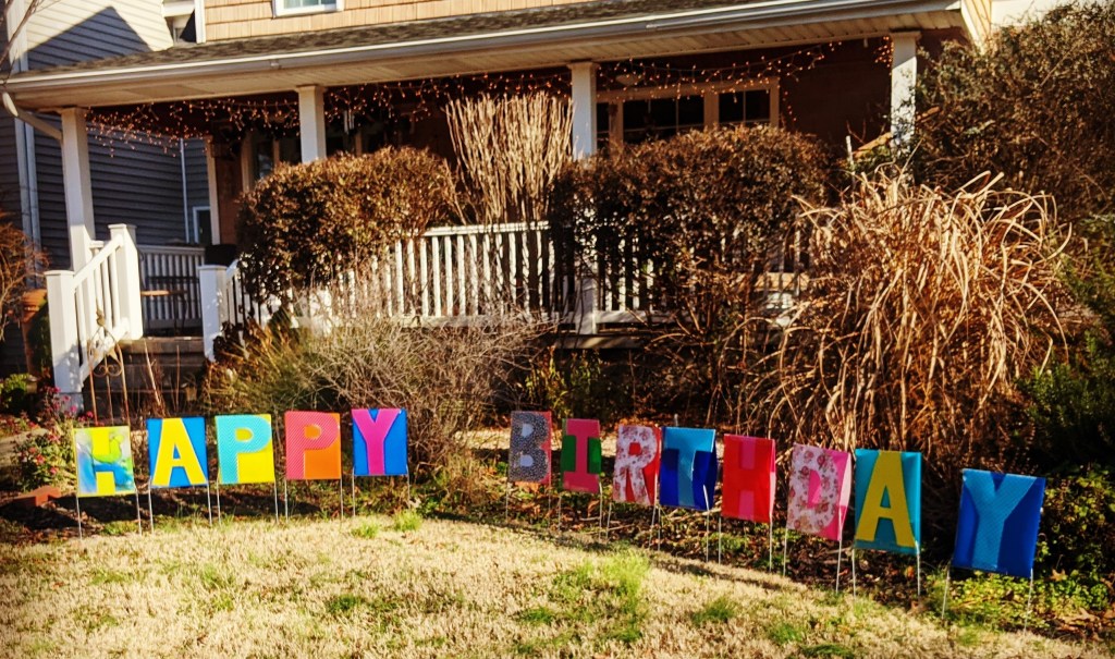 I’ve learned that when you nurture connections with as much authenticity as you can muster, folks show up. And all you really need is one person to come through. In fact, my soul friend of decades with whom I’ve shared a river of tears and a bounty of belly laughs gave me the most kind and thoughtful surprise. She created these birthday signs using plastic folders, so they’re completely weatherproof and reusable. I found them in my yard on my birthday.