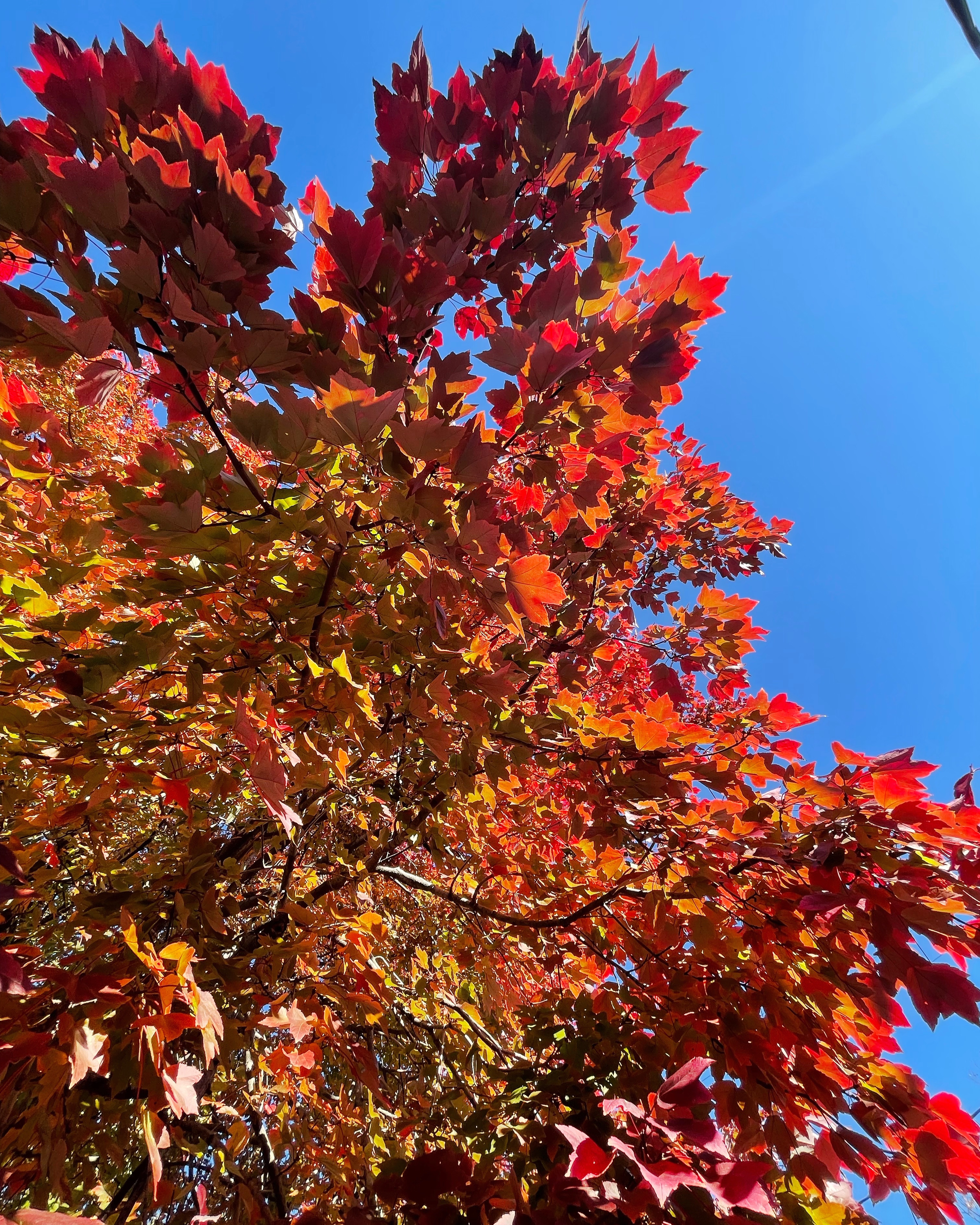 While driving past the park across from my house on the way to run some errands this morning on the day before Thanksgiving, I saw a large and colorful tree that I can’t remember ever connecting to in the past. “Come,” it said. “I’ve been waiting for you.” But I wanted to get to the store before it got crazy and told myself I’d stop on my way home— if I didn’t forget. Again on my way back, it beckoned me, “Come. Pause in the light of my colors. Let me be your moment of something spectacular today.”
