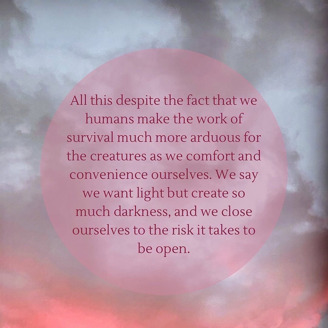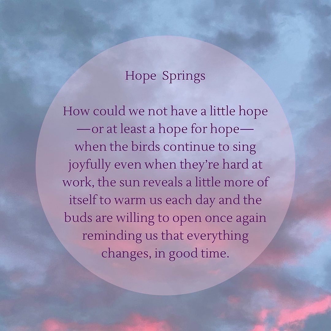 On this Vernal Equinox, the need to hold both sorrow for the Earth and the world and Hope felt compelling to me. The sky this evening was a perfect mix of dark and light and blossomy pink. Wishing you some hope and offering to you and asking you to send further out into the world and the earth caring and compassion.